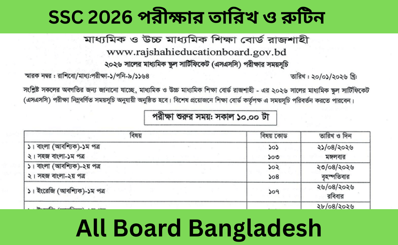 SSC 2026 পরীক্ষার তারিখ ও রুটিন